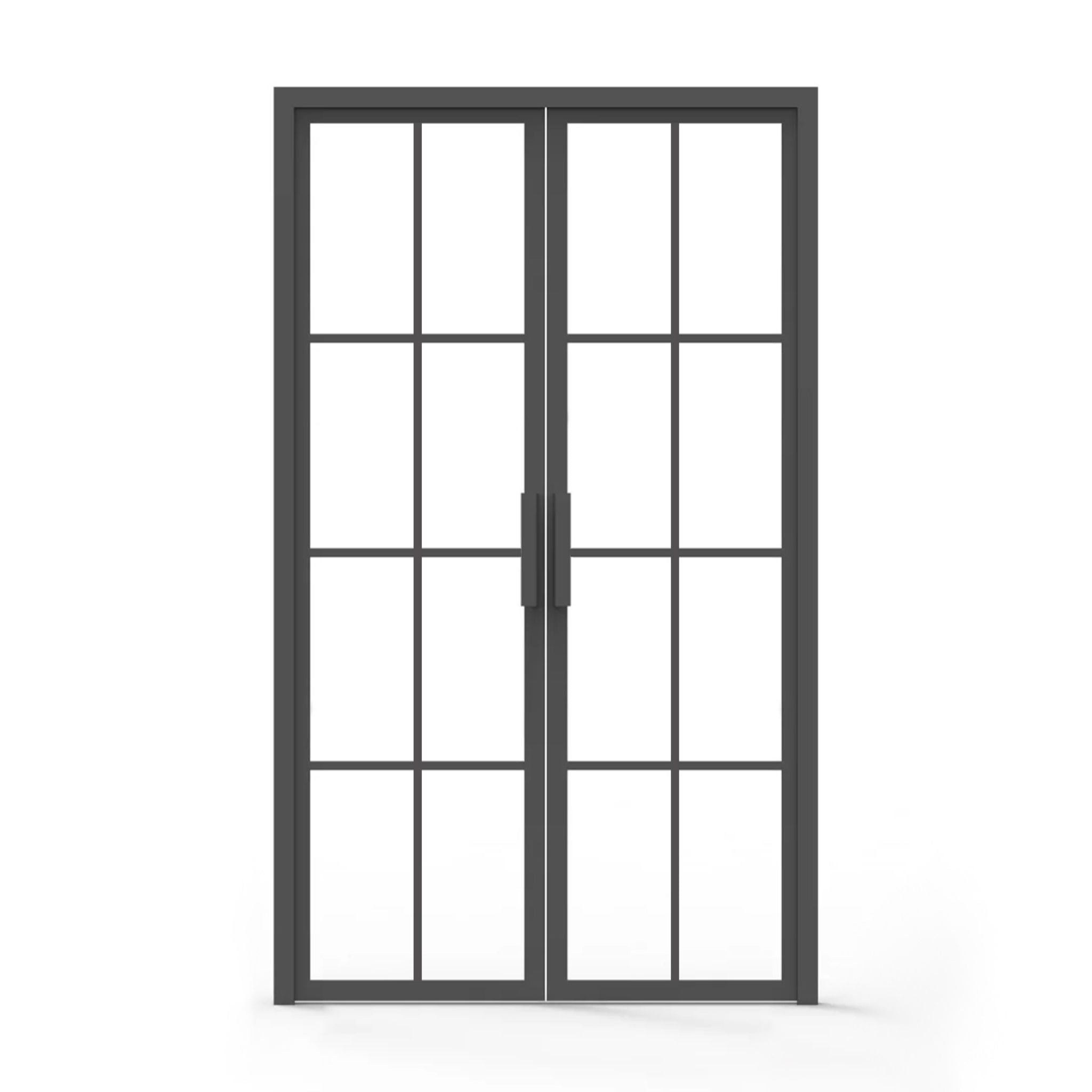 The 8 Lite Interior Iron Door balances light and structure within any room in your home. Eight glass panels framed by durable iron enhance room divisions while encouraging an open feel. Available in both clear and frosted glass, this modern interior door is flexible for your privacy preferences and lighting needs.