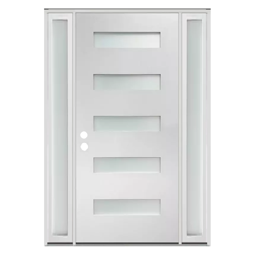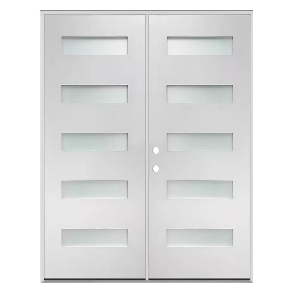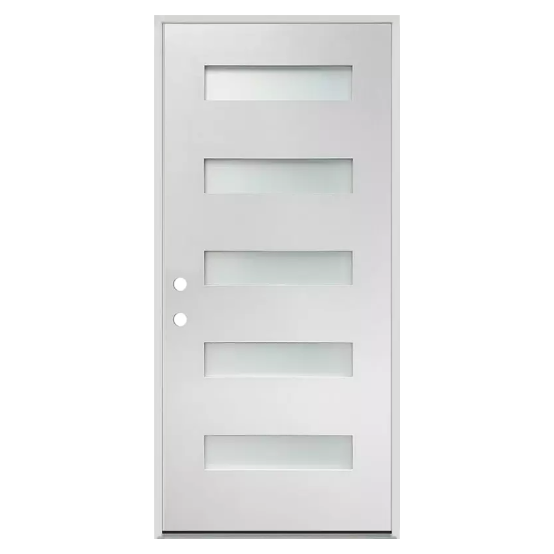 Elevate your entryway with the unparalleled elegance of the Home Center Outlet 5-Lite Fiberglass Etched Glass Door. Crafted with meticulous attention to detail, this door seamlessly blends style and functionality to redefine your space. Available in various sizes and featuring both right and left-hand swing options, it effortlessly caters to your unique needs. Upgrade your home with the timeless sophistication and durability. Looking for an interior door to match? Check out the 5 Lite Frosted Primed Pre-hung Interior Door.