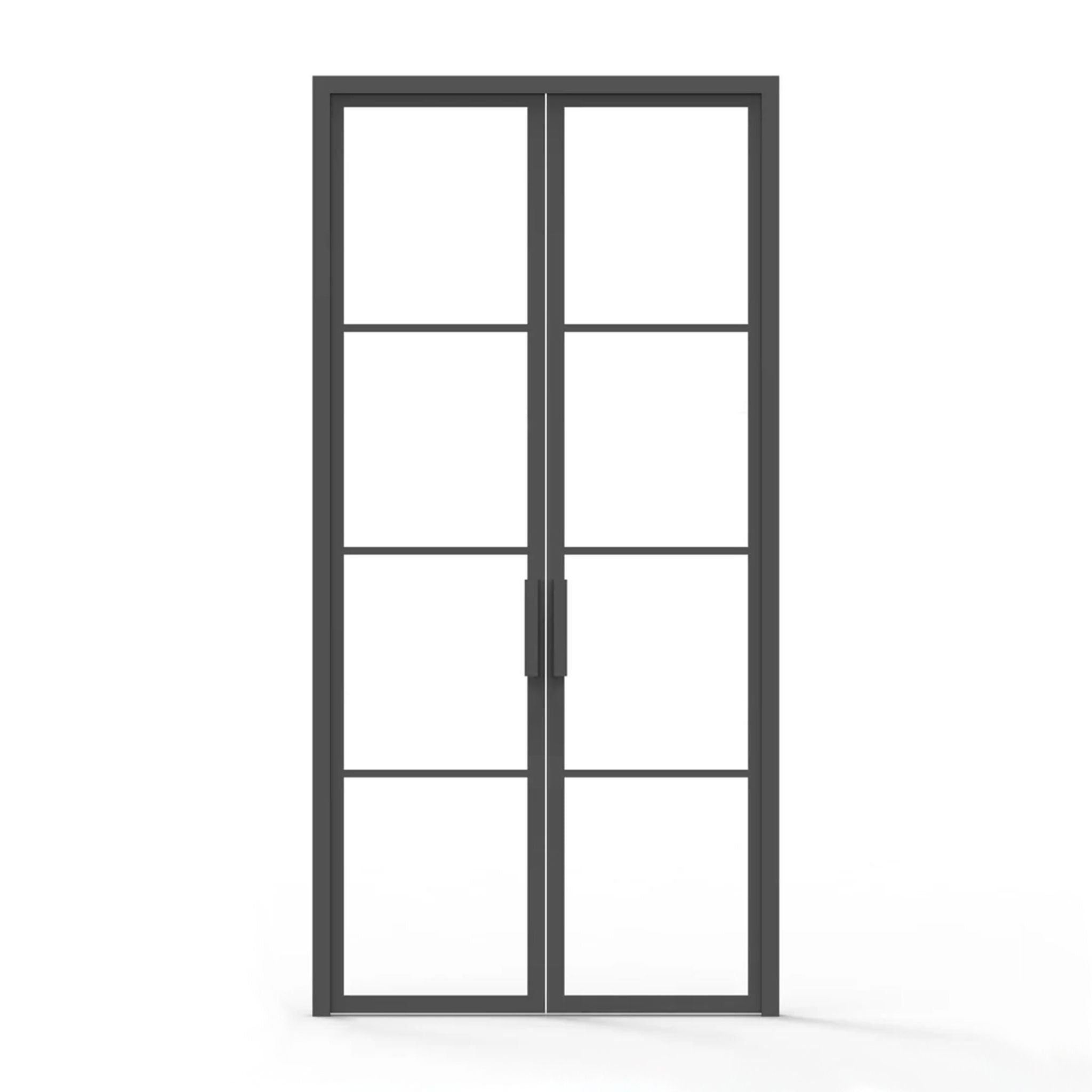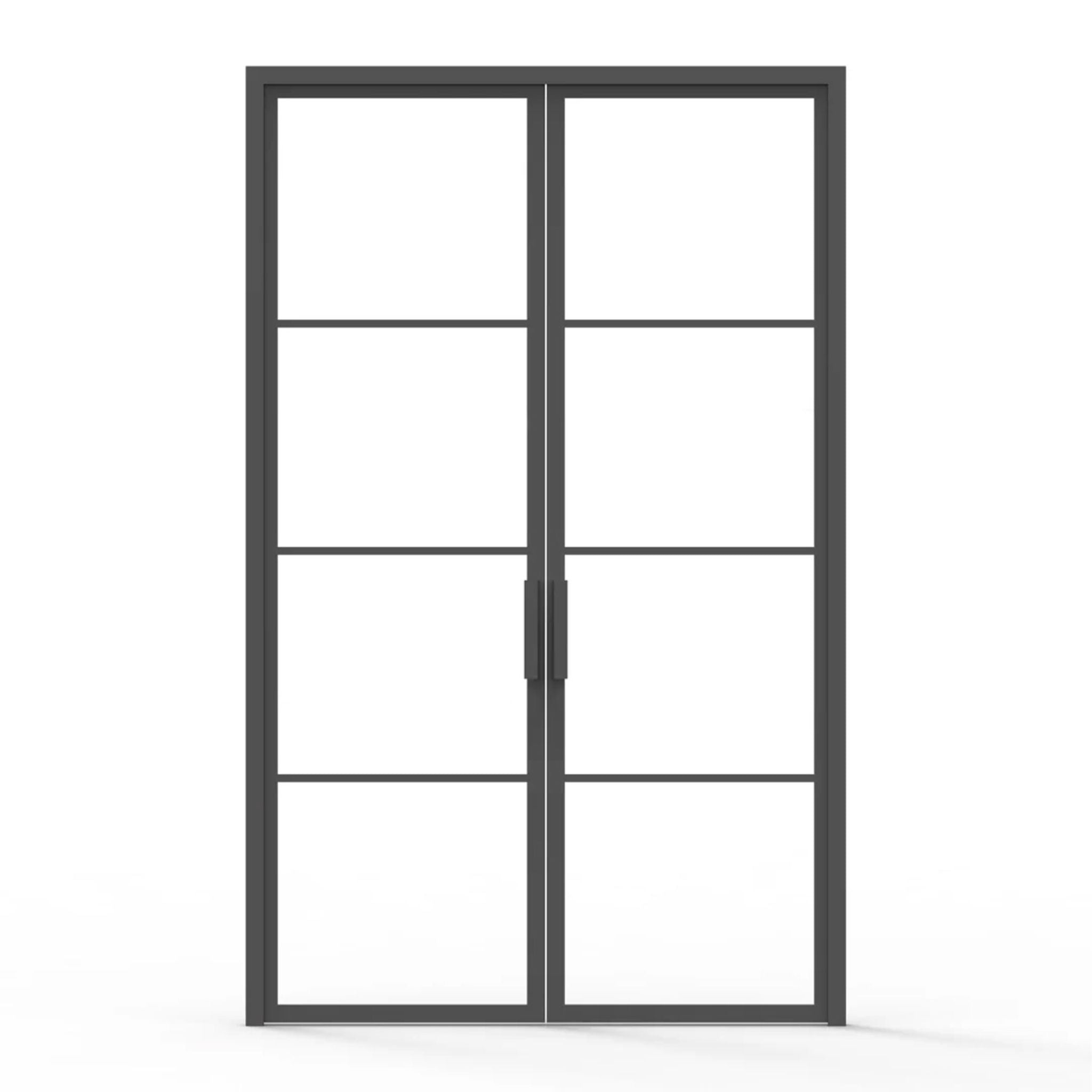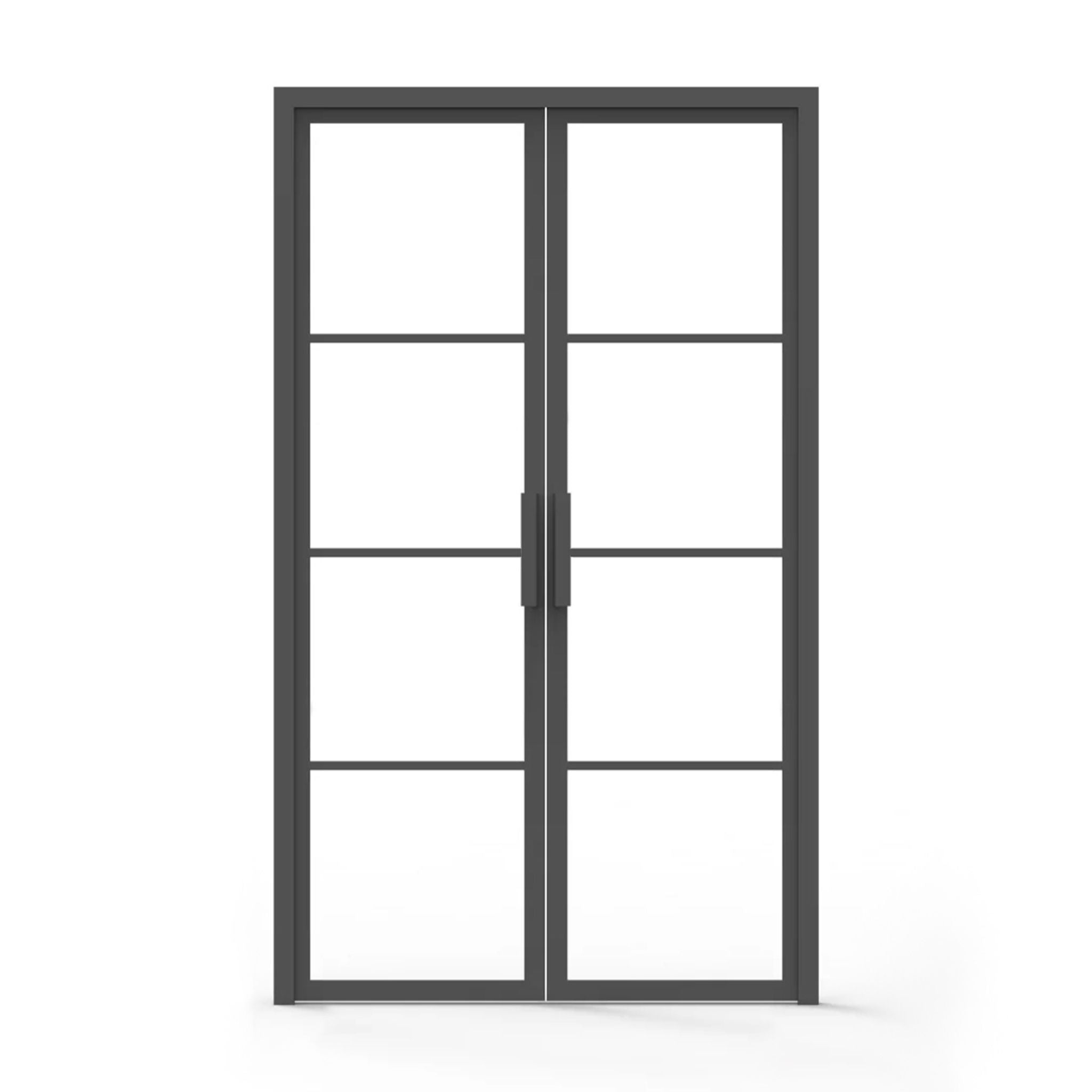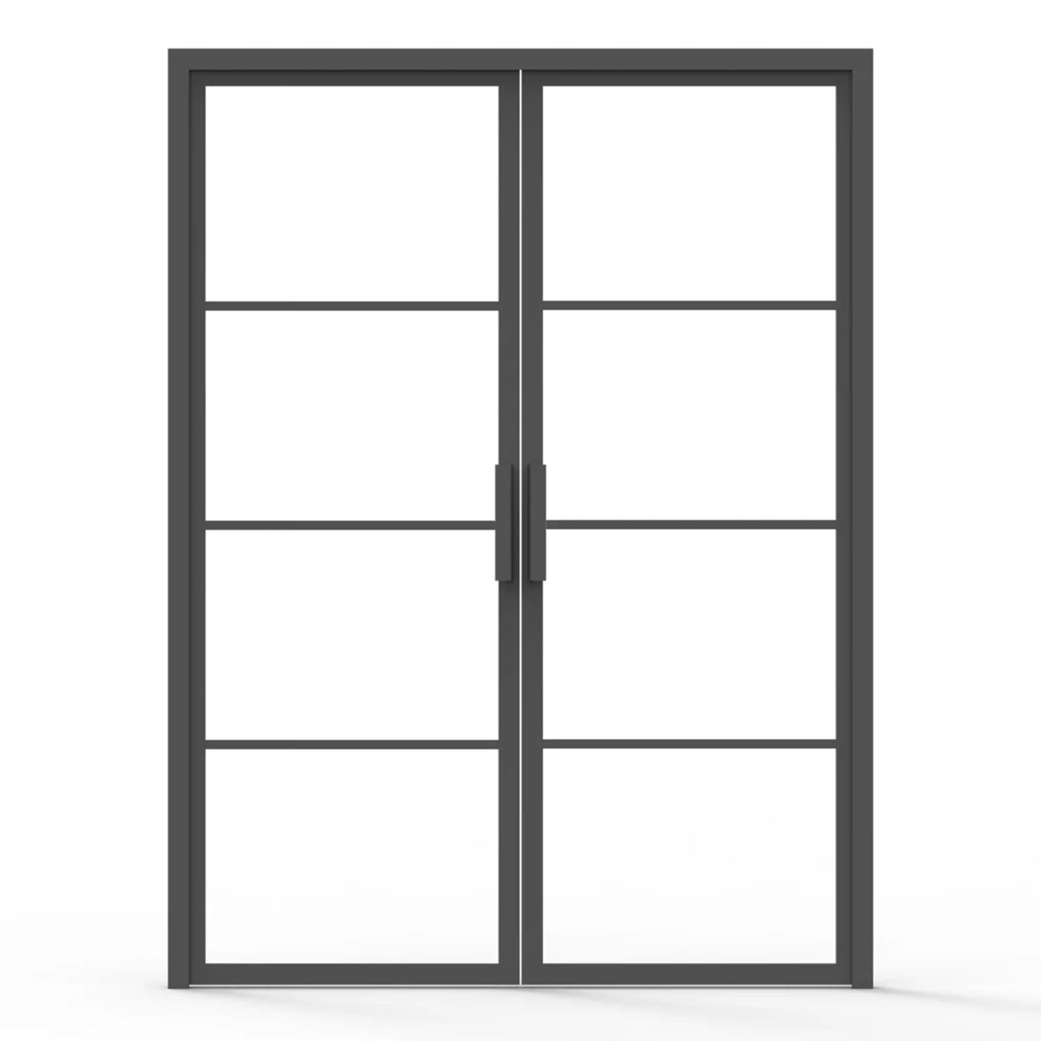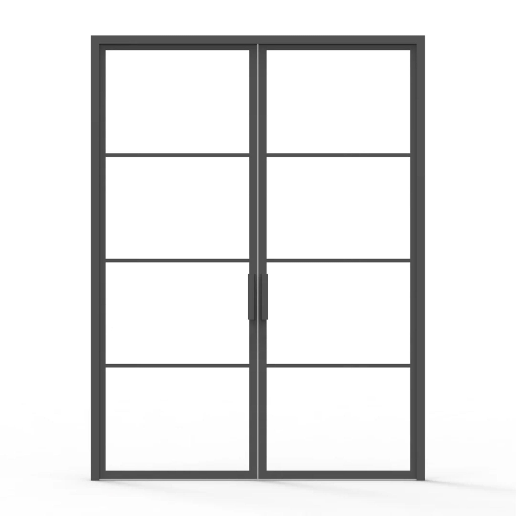 Transforma una habitación con estas puertas interiores de hierro 4-Lite. Ya premontada, su puerta estará lista para instalar. Como toque final, el acabado negro mate de esta puerta complementará cualquier decoración.