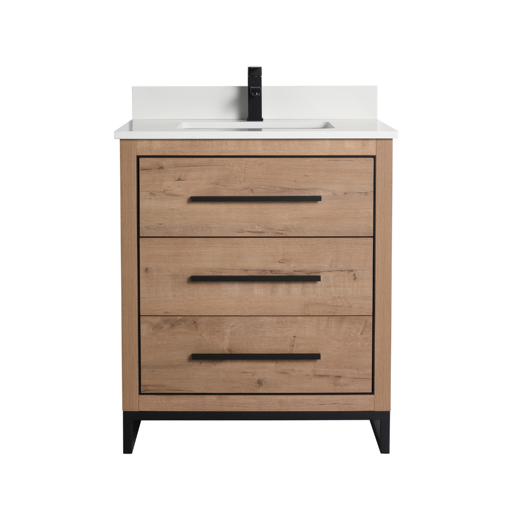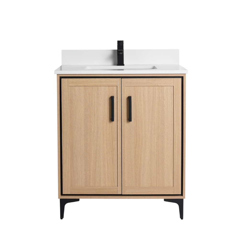 Design inclusions: Consider unique design features that meet your needs. Home Center Outlet carries vanity designs with plenty of storage space and a bathroom vanity with a sink. Additionally, we have vanities with tops made of pure white quartz stone. You can also choose which countertop you'd like for your small or large bathroom vanities.
