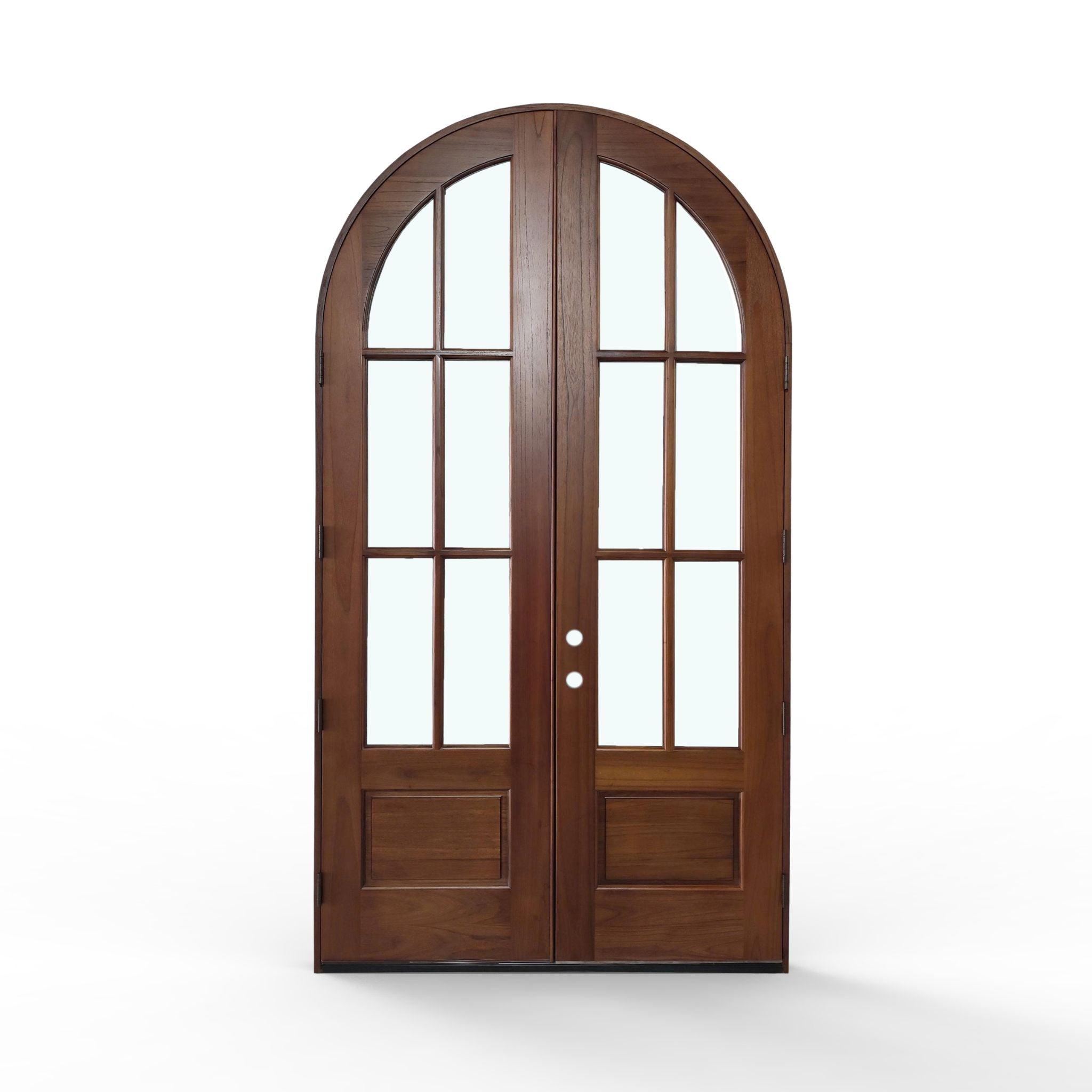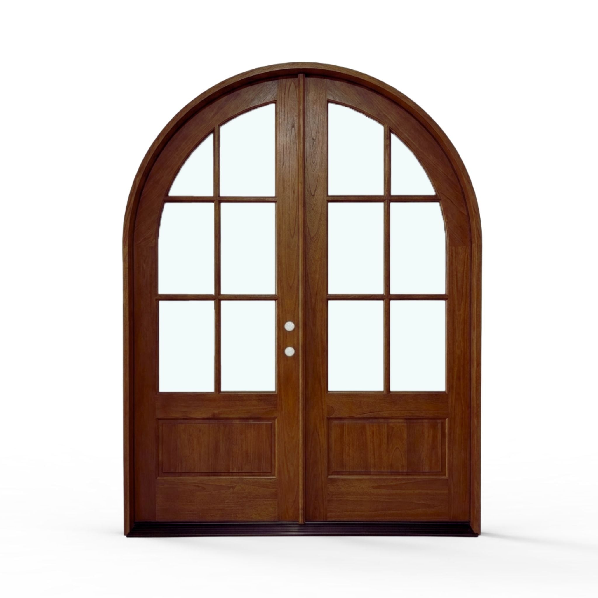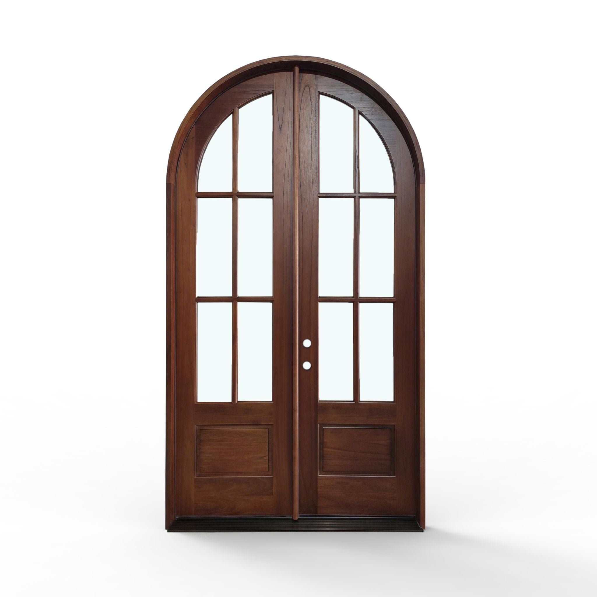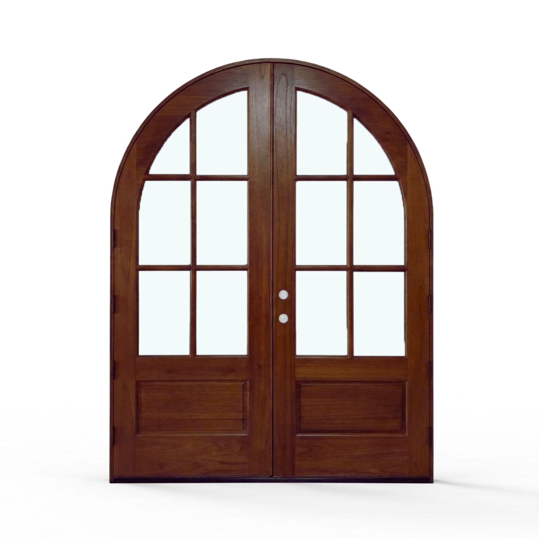 Elevate your home's entrance with our Sahara Weather-Proof Mahogany 6 Lite Arch Top Double Door with Clear Glass. This premium exterior double door showcases a graceful arched top design with six individual glass lites, featuring crystal-clear glass that maximizes natural light and provides unobstructed views. Engineered for superior weather resistance with professional-grade sealing systems throughout.