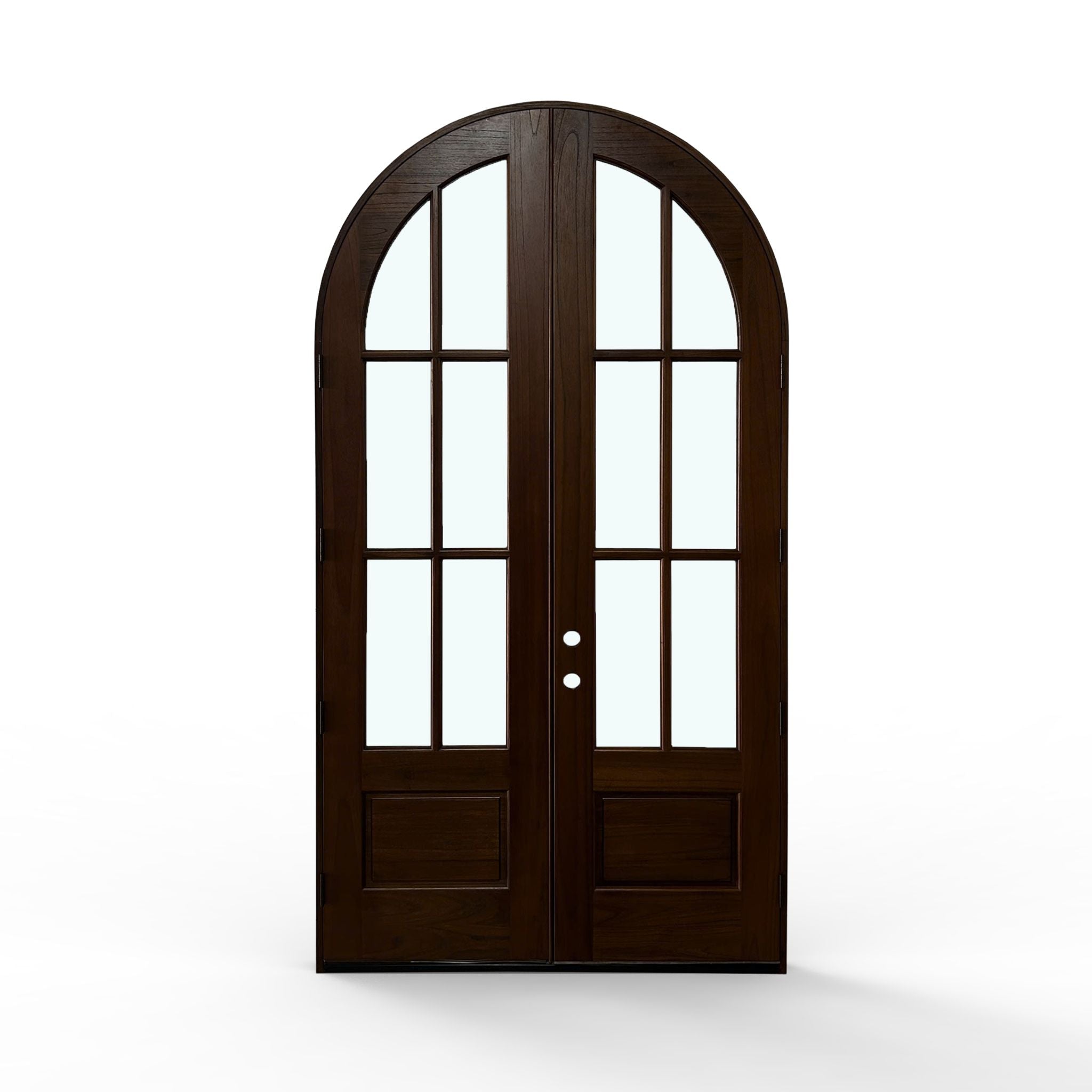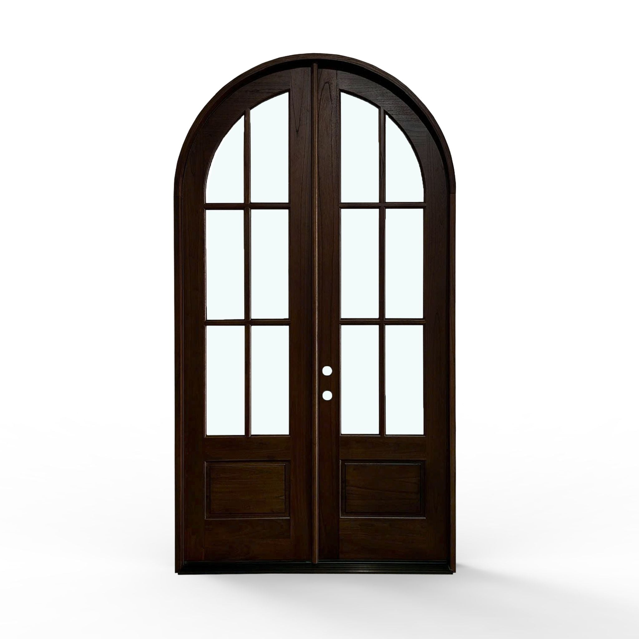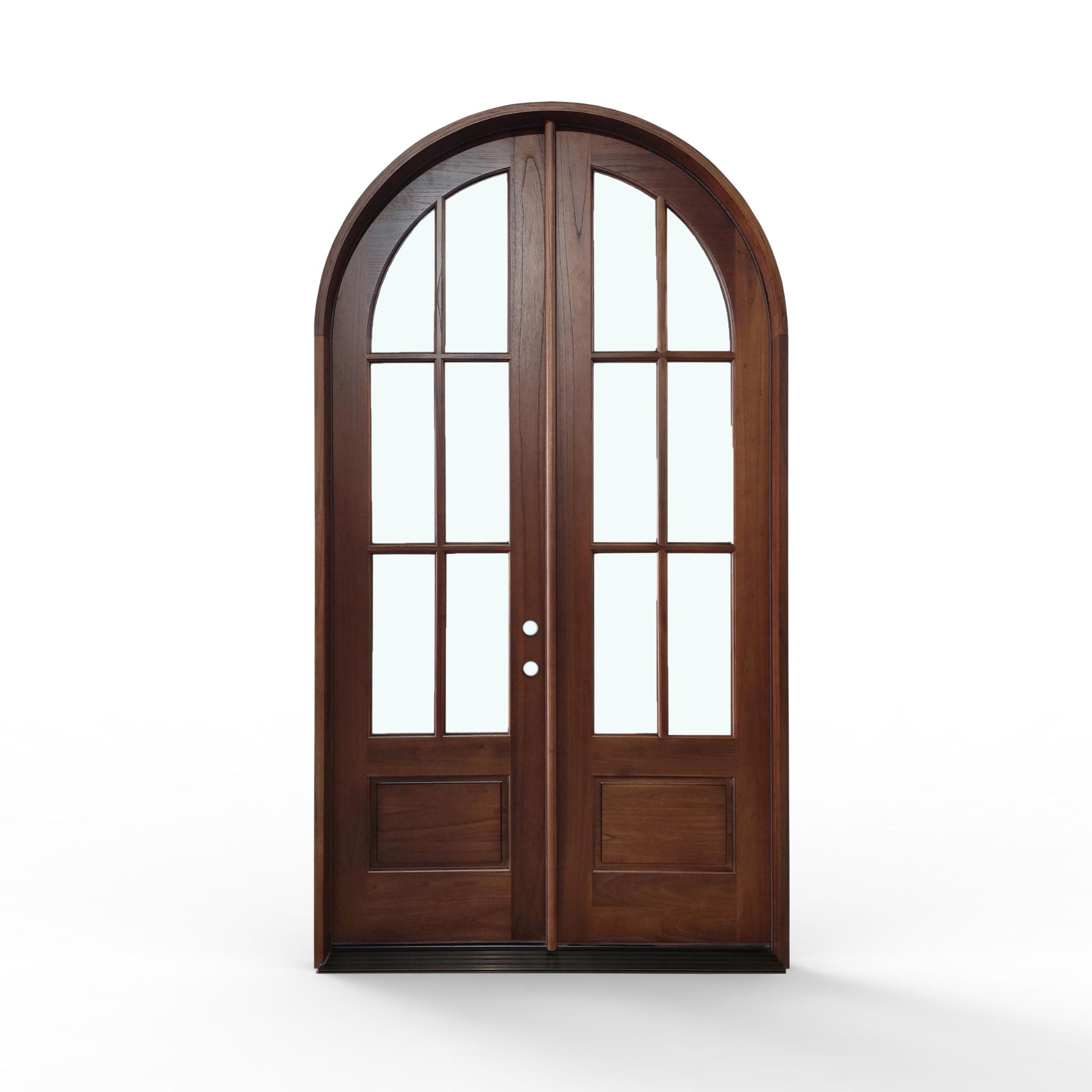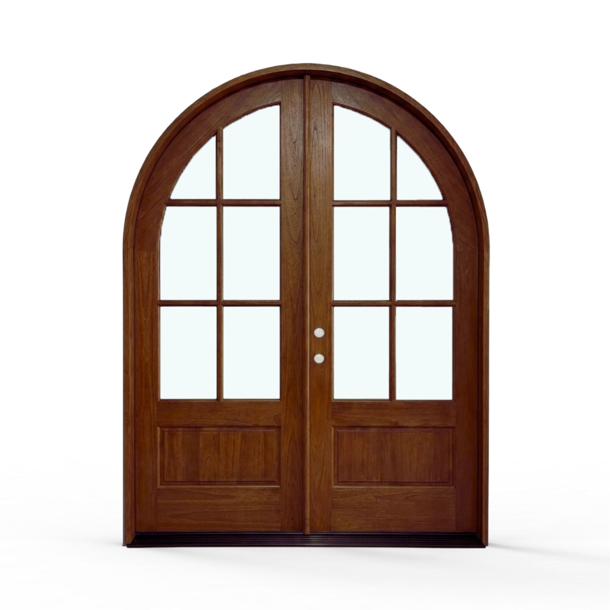 Elevate your home's entrance with our Sahara Weather-Proof Mahogany 6 Lite Arch Top Double Door with Clear Glass. This premium exterior double door showcases a graceful arched top design with six individual glass lites, featuring crystal-clear glass that maximizes natural light and provides unobstructed views. Engineered for superior weather resistance with professional-grade sealing systems throughout.