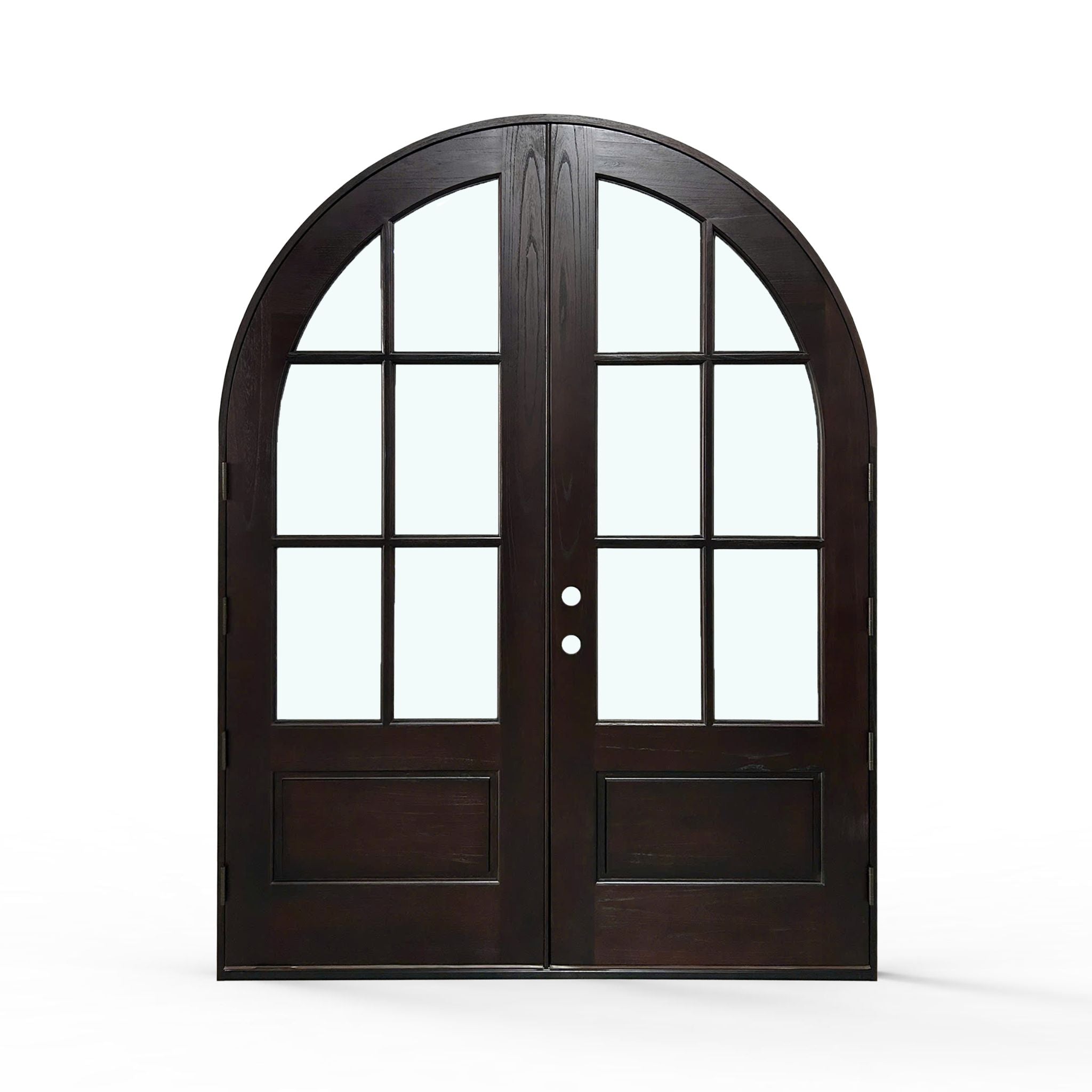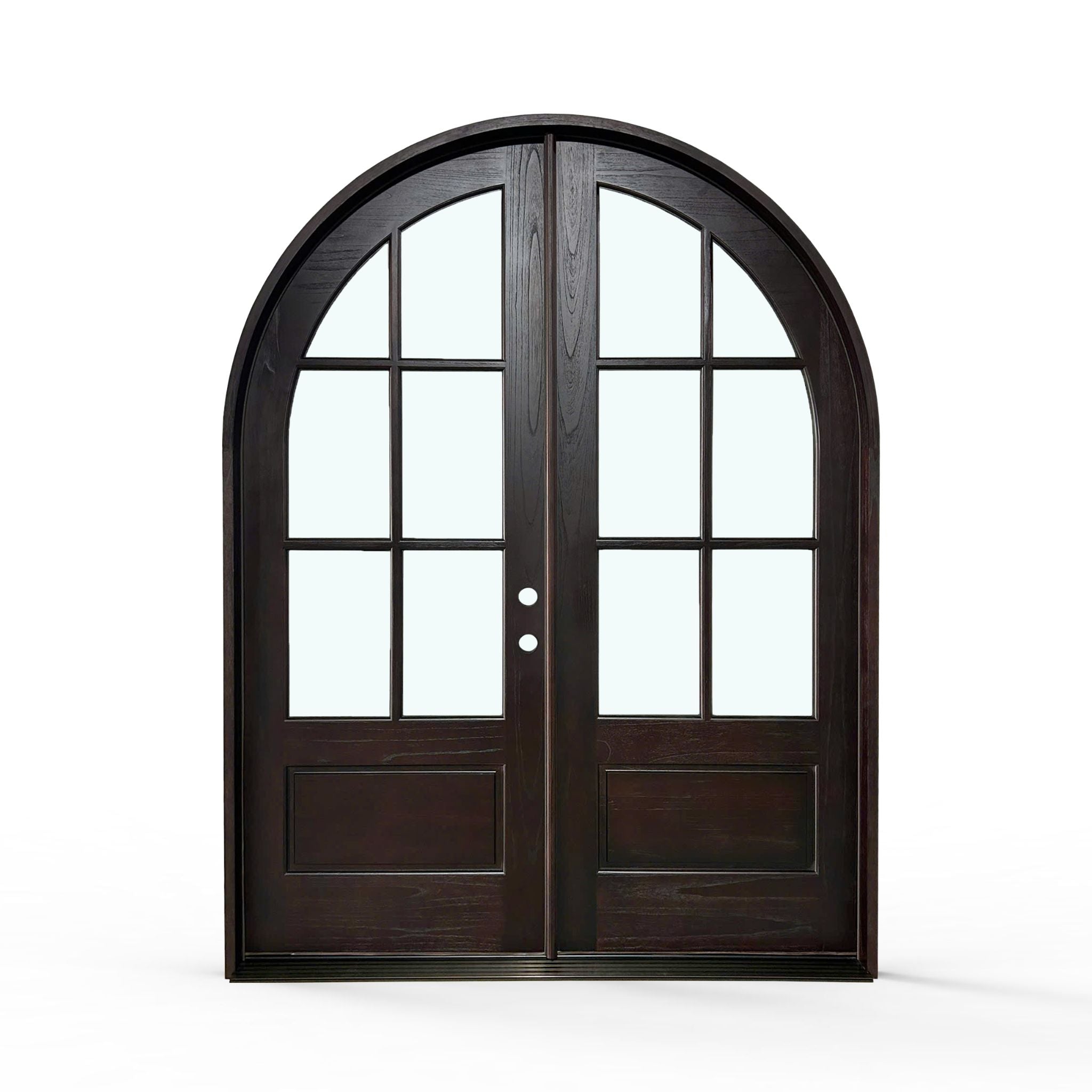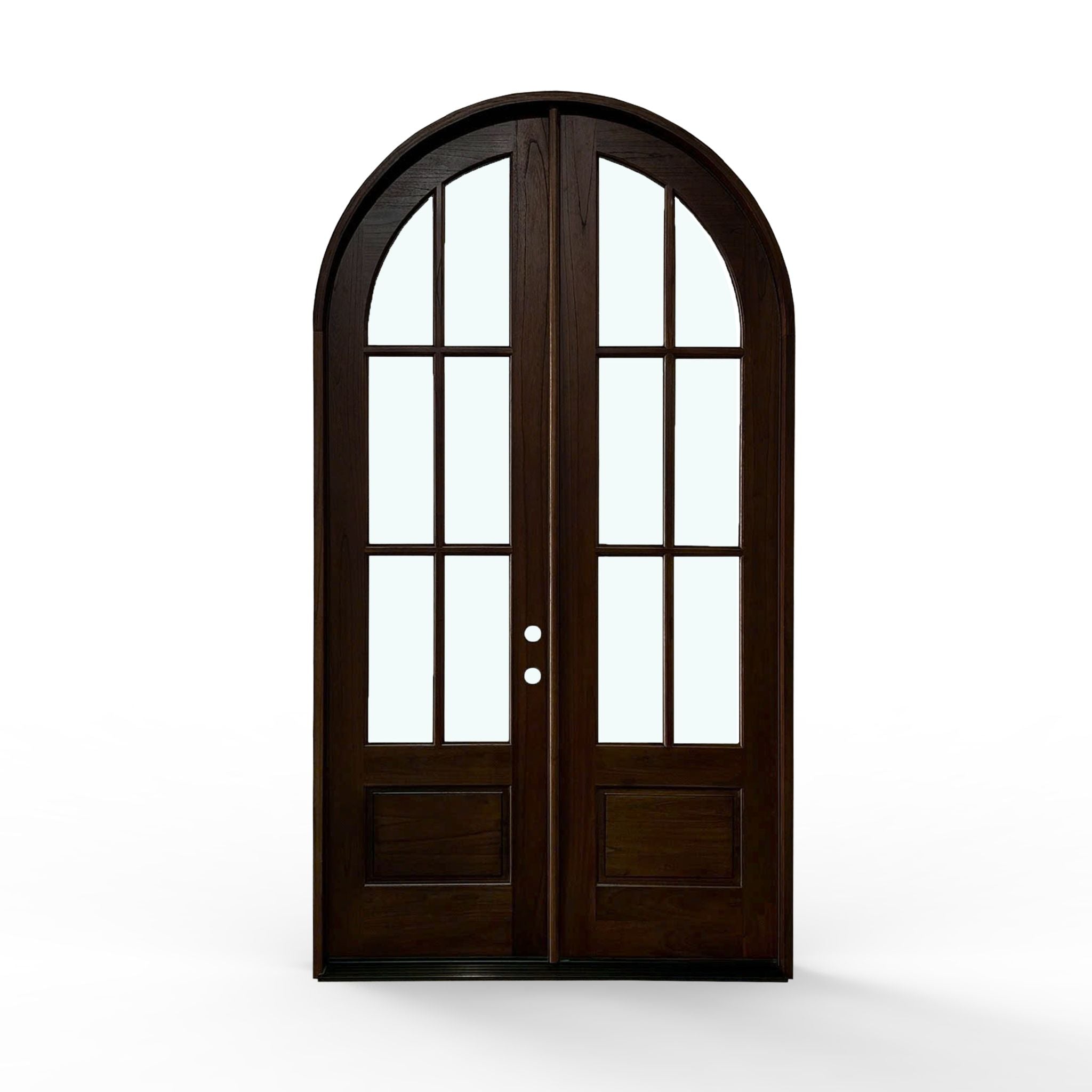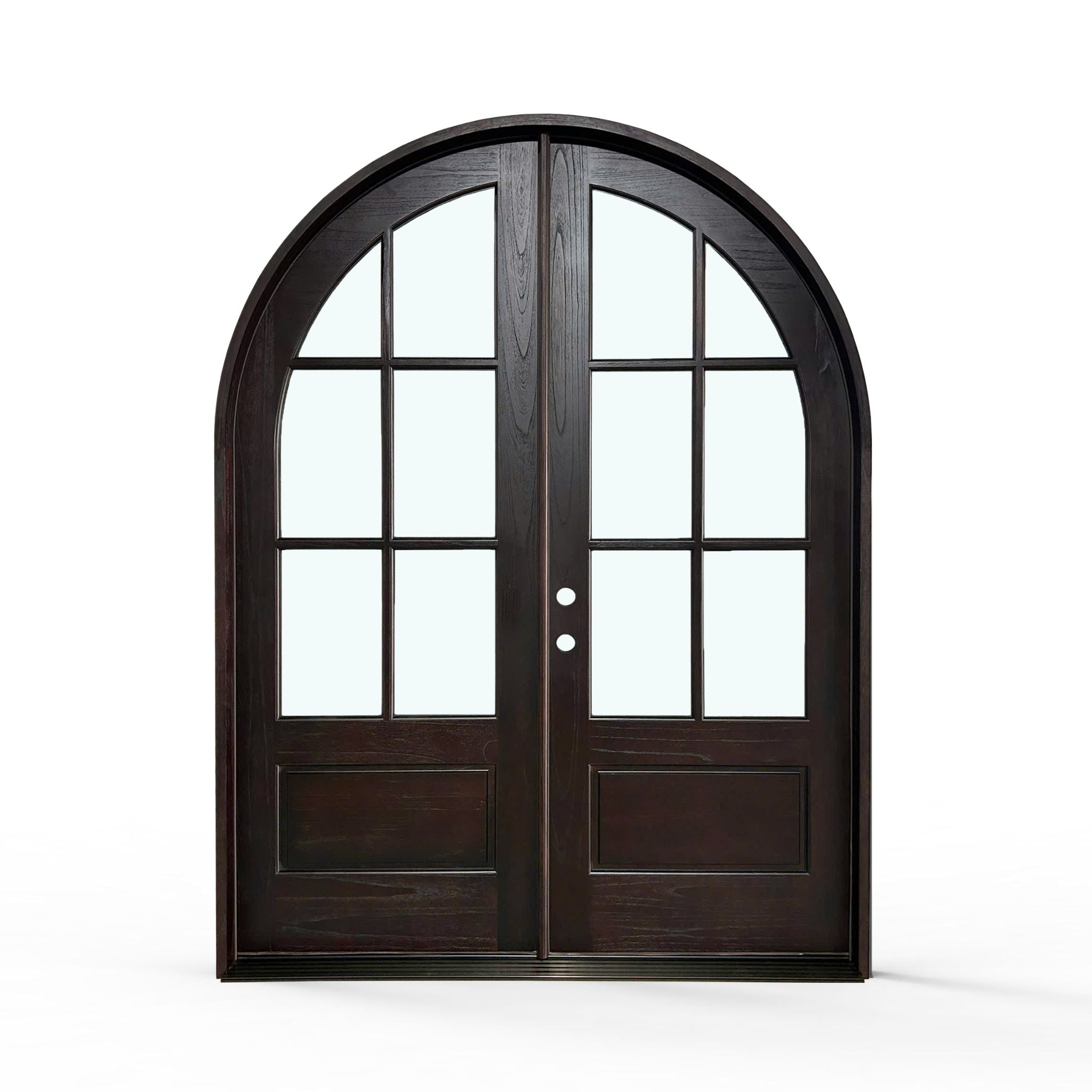 Elevate your home's entrance with our Sahara Weather-Proof Mahogany 6 Lite Arch Top Double Door with Clear Glass. This premium exterior double door showcases a graceful arched top design with six individual glass lites, featuring crystal-clear glass that maximizes natural light and provides unobstructed views. Engineered for superior weather resistance with professional-grade sealing systems throughout.