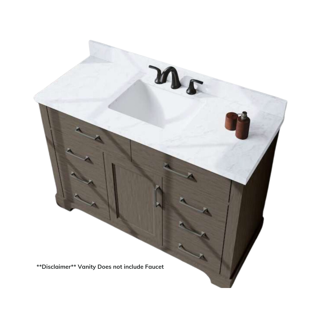 Transform your bathroom with the Alton Vanity in brown. Made from durable Mdf construction and featuring a luxurious Carrera stone vanity top with an integrated undermounted sink, this vanity will elevate your daily routine. Upgrade your space with this stylish and practical addition.