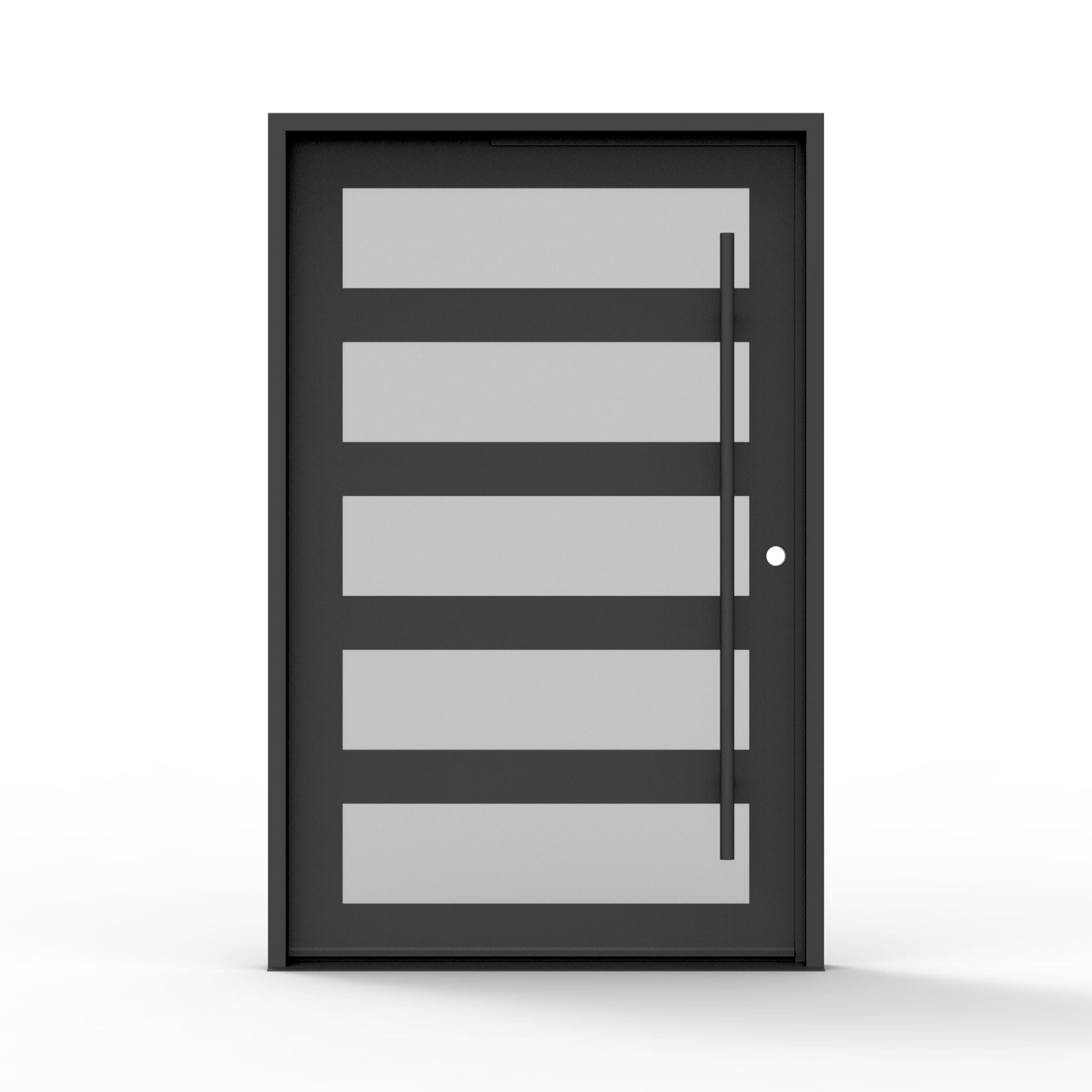 This 5-Lite Pivot Door is a modern styled entrance that offers many options for your home. With light-filled and versatile frosted glass, it provides a great look at any angle. Choose from a list of sizes to find the perfect door for your home!