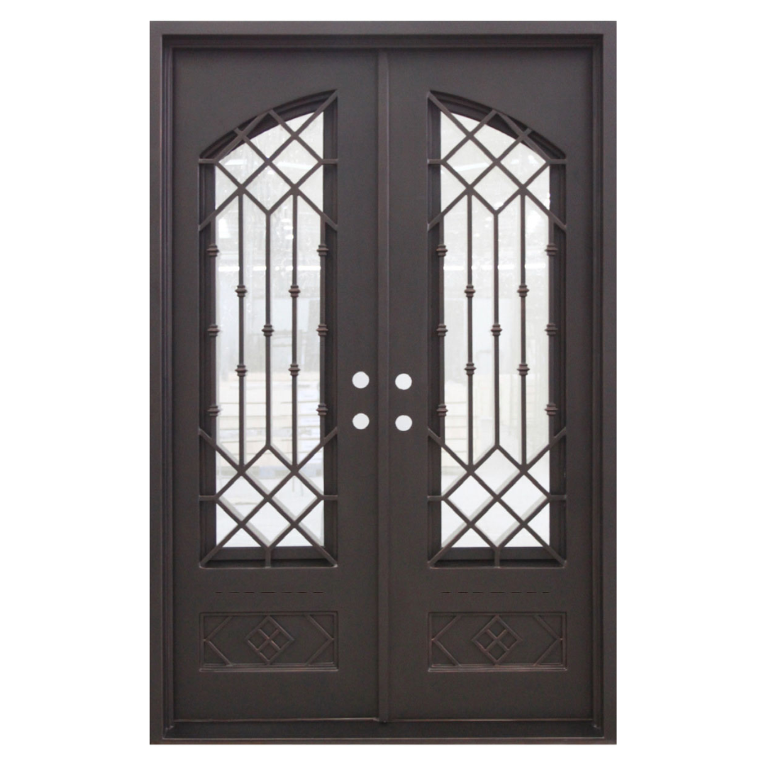 The Lux 3/4 View Iron Double Door offers a classic design, combining durability with modern elegance. This double iron door features a large glass panel that invites light while enhancing privacy and security. The Lux ¾ View Door has beautifully refined ironwork and clean lines make it a stylish addition to any entryway, setting a sophisticated tone for your home. For a full glass look, explore the Lux Full View Iron Door.