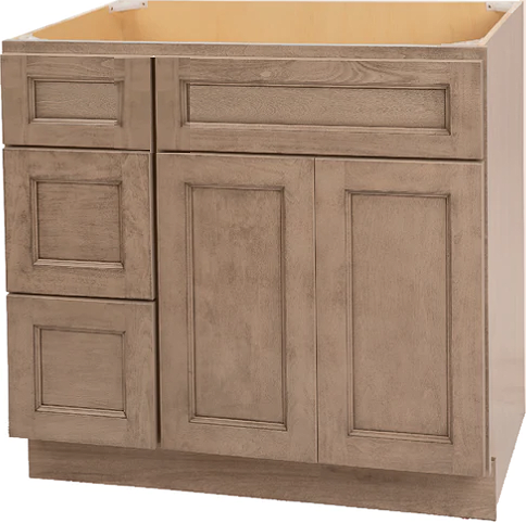 Elevate your bathroom with the Prestige Oxford Vanity by Home Center Outlet. Crafted to perfection, this vanity seamlessly blends timeless sophistication with modern functionality. Available in sizes ranging from 30 to 48 inches and finished in majestic Mist and Toffee color, it exudes a luxurious aura that transforms any space. With its sturdy construction and meticulous attention to detail, the Prestige Oxford Vanity offers a practical storage solution and a statement piece that elevates your bathroom into a haven. Check out our vanity countertops and tailor your space.